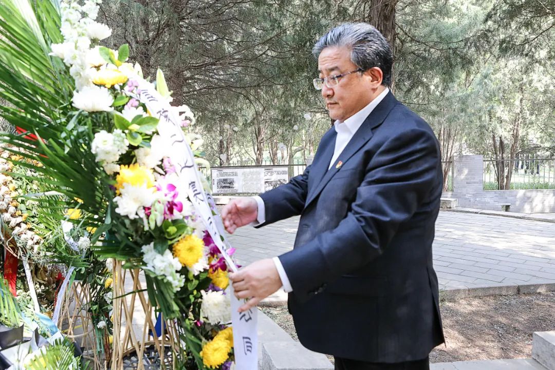 一是要充分认识开展党史学习教育的重大意义。集团公司各级党组织要深入学习领会习近平总书记关于党的历史的重要论述,把开展党史学习教育作为重要契机,扎扎实实悟原理,把党史学习常态化、具体化,从党史中汲取营养和力量; 二是要在党史学习教育中大力弘扬“两弹一星”精神。党的十八大以来,习近平总书记先后10余次谈到“两弹一星”精神及其时代价值。这也意味着我们核工业人肩上承担着沉甸甸的责任; 三是要在党史学习教育中推动“十四五”开好局起好步。各级党组织要坚持系统观念,做到“四个结合”,真正把党史学习教育的学习成果转化为推进集团公司“十四五”时期改革发展,进一步推动集团公司在新发展阶段实现高质量发展。 读书班上,集团公司党组成员观看中央电视台新闻片《我的父亲彭士禄》,该片从彭士禄女儿的视角,描述了彭士禄为人民无私奉献,为核事业奋斗终身的感人事迹。彭老的先进事迹感人至深、催人泪下,在场的每一位观众都深受感动。会上,余剑锋再次发出“向彭士禄同志学习”的号召,学习彭老坚守初心、对党忠诚的政治品格,学习彭老艰苦奋斗、甘于奉献的精神境界,学习彭老追求质朴、以身许国的家国情怀,学习彭老勇攀高峰、敢为人先的科学精神,学习彭老两袖清风、淡泊名利的高尚情操。 “无数英雄先烈是我们民族的脊梁是 我们不断开拓前进的勇气和力量所在。” 习近平总书记指出,我们一定要铭记烈士们的遗愿,永志不忘他们为之流血牺牲的伟大理想。 4月20日下午,余剑锋一行前往三一八烈士陵园进行参观、祭扫。三一八烈士陵园坐落在圆明园遗址西南角,是为纪念1926年“三一八”惨案牺牲的47名烈士而建立的。纪念碑四周的松树已经参天,茂盛的枝叶将纪念碑遮盖起来,结实的围栏将纪念碑与外界分隔开,仿佛在守护着陵园内的宁静、庄严。