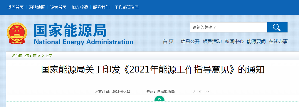 发表时间:2021-04-22 17:38 ![]() 4月22日,国家能源局官网发布消息,为扎实做好2021年能源工作,持续推动能源高质量发展,国家能源局研究制定了《2021年能源工作指导意见》并予以发布。 意见明确2021年主要预期目标: 以下为通知原文 国家能源局关于印发《2021年能源工作指导意见》的通知