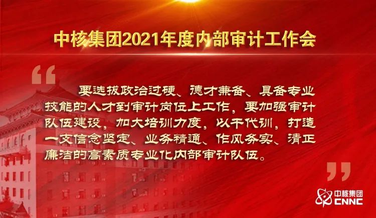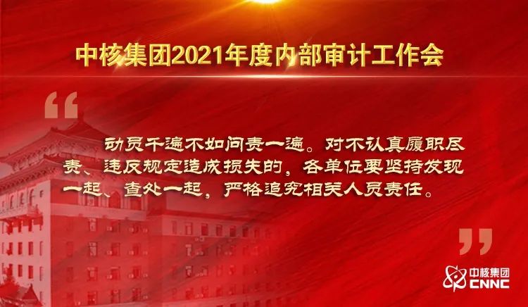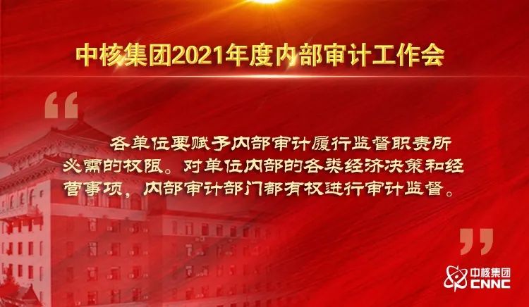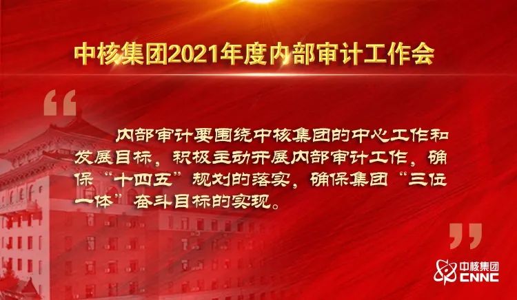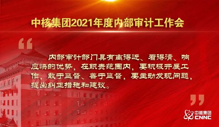 3月19日,中核集团召开2021年度内部审计工作会议,总结回顾集团公司“十三五”内审工作情况,表彰内审先进集体和先进工作者,谋划“十四五”内审工作新蓝图,部署2021年内部审计重点工作任务。中核集团党组书记、董事长余剑锋出席会议并强调,要深入贯彻落实习近平总书记重要指示批示精神和党中央决策部署,落实中央审计委员会、审计署、国资委和国防科工局的要求,明确内部审计工作的目标、方向和任务,以高质量审计保障集团公司高质量发展。