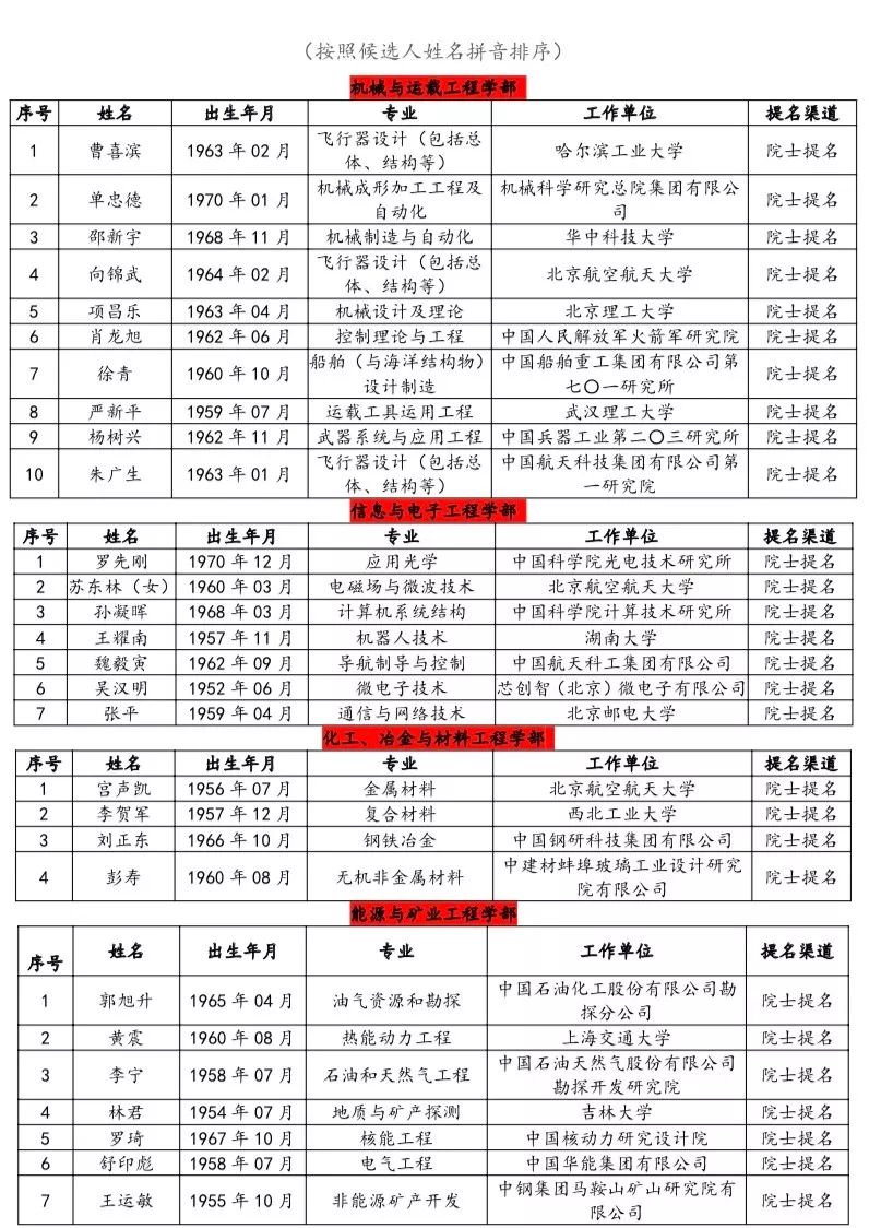 罗琦履历 罗琦,男,1967年10月出生,汉族,四川富顺人。全国政协委员、现任全国政协委员、中国核动力研究设计院院长,研究员级高级工程师。 1991年6月参加工作 2003年5月任中国核动力研究设计院副院长 2008年9月主持全院行政工作 2009年1月任中国核动力研究设计院院长 根据中国工程院公开的《中国工程院院士增选工作实施办法》,候选人要求具备以下条件:在工程科学技术方面做出重大的、创造性的成就和贡献,热爱祖国,学风正派,品行端正,具有中国国籍的高级工程师、研究员、教授或具有同等职称的专家,可被提名为院士候选人并当选为院士。 院士增选工作每两年进行一次,每次增选总名额及各学部的名额分配,由主席团研究决定。候选人可单独通过院士或有关学术团体提名,也可以同时通过以上两种渠道提名。 在能源与矿业工程领域,2019年共增选9位院士:郭旭升(中国石油化工股份有限公司勘探分公司 )、黄震 (上海交通大学)、李宁(中国石油天然气股份有限公司勘探开发研究院 )、林君 (吉林大学 )、罗琦(中国核动力研究设计院) 、舒印彪(中国华能集团有限公司) 、王运敏 (中钢集团马鞍山矿山研究院有限公司)、杨春和(中国科学院武汉岩土力学研究所)、赵振堂(中国科学院上海高等研究院)。 今年3月31日,2019年院士增选候选人提名工作结束。最终确定的有效候选人共531位,其中能源与矿业工程学部提名69人。